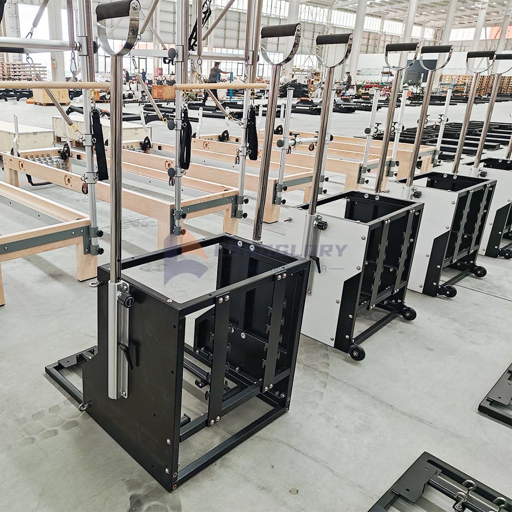 ຍົກລະດັບການຝຶກ Pilates ຂອງທ່ານດ້ວຍເກົ້າອີ້ Pilates Wunda ຄລາສສິກ, ອຸປະກອນທີ່ຫລາກຫລາຍສໍາລັບຄວາມເຂັ້ມແຂງຫຼັກ, ຄວາມຍືດຫຍຸ່ນ, ແລະການປັບສະພາບຮ່າງກາຍ. ການກໍ່ສ້າງດ້ວຍໄມ້ແຂງລະດັບພຣີມຽມແລະເຫຼັກເສີມ, ມັນສະຫນອງຄວາມຫມັ້ນຄົງແລະຄວາມທົນທານຍາວນານສໍາລັບທັງໃນເຮືອນແລະການນໍາໃຊ້ມືອາຊີບ.